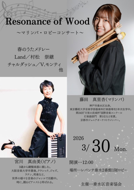 出演は音楽協会個人会員で、現在東京藝術大学で学ぶ藤田真里杏さんによるマリンバの演奏です。