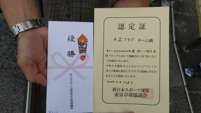 25年11月現在、東京卓球協議会(3部)、東京都市町村連盟(4部)所属