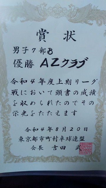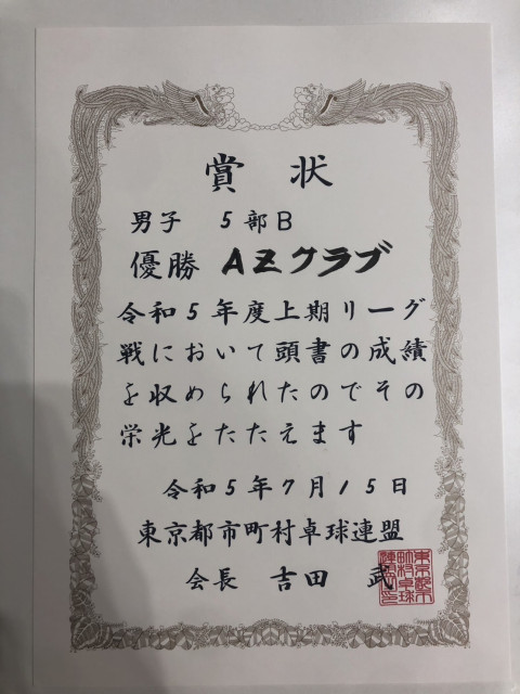 男子団体 5部優勝(東京都市町村リーグ)