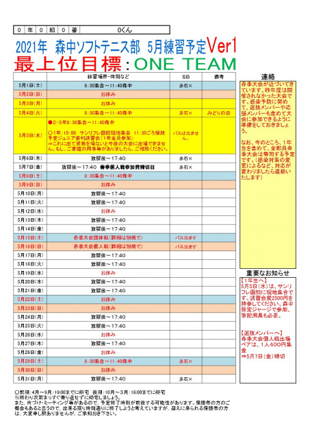 ソフトテニス部の予定表はOneDriveにてアップロードしていくことにしました。つきましては、https://1drv.ms/u/s!AjV3WydYPp8piFAK-f-TNHVdViIL?e=o7MG4Hからアクセスしてください。 もしくは、アップロードしたQRコードを読み取ってください。よろしくお願いします。