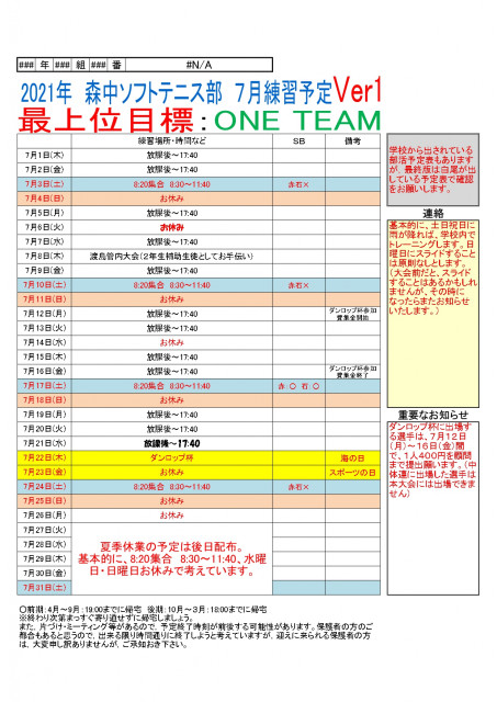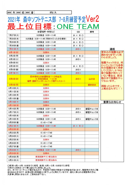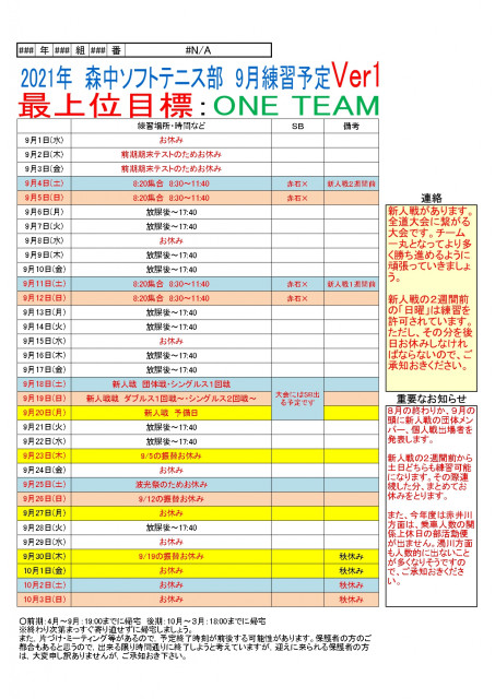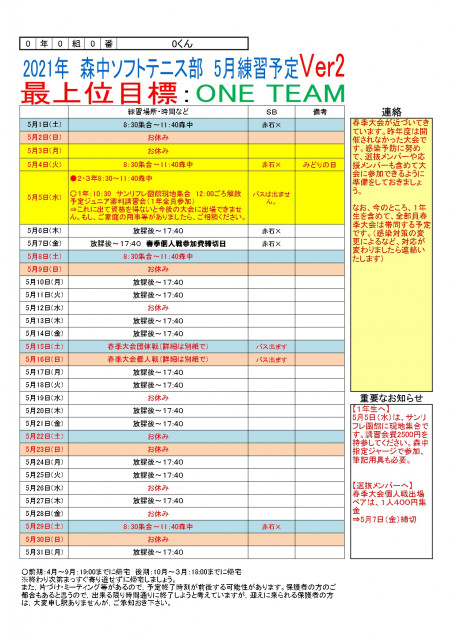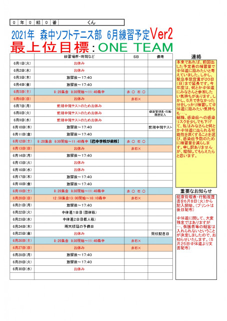 ソフトテニス部の予定表はOneDriveにてアップロードしていくことにしました。つきましては、https://1drv.ms/u/s!AjV3WydYPp8piFAK-f-TNHVdViIL?e=o7MG4Hからアクセスしてください。