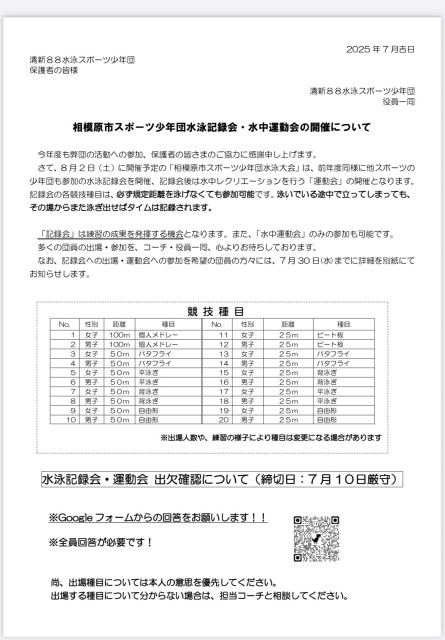 小山小学校の方は5日プール活動の日に配布致します。参加されなかった方の分は学校経由で配布させて頂きます。