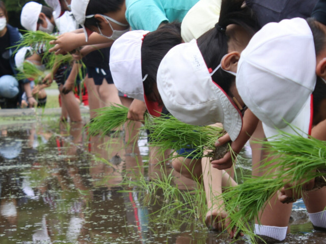 ボランティアさんに、教えて頂いた通りに苗を指で挟んで上手に持って植えている子もいました。