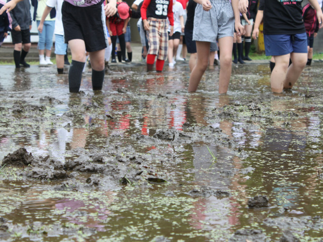 みんな転びそうになりながらも何度も何度も繰り返し田んぼに入りました。