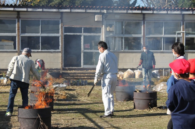 子供達は自分でドラム缶の中にお芋を入れて、焼きあがるのを教室で待ちます。