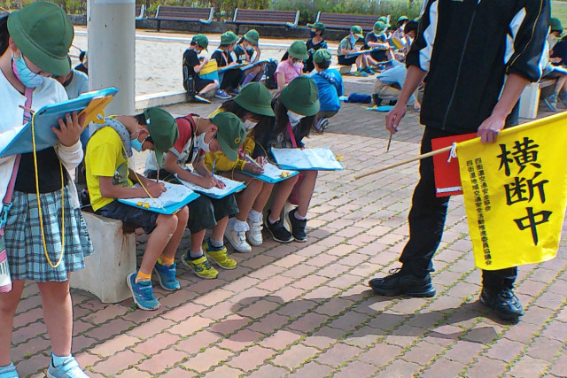 最初に先生から「交通安全教室の時は動く物に注意しようとありましたが、町探検では動かないものを見つけよう」とお話がありました