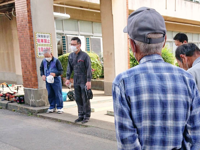 朝のうちは日差しがあり汗ばむ陽気で水分補給をしながらの作業