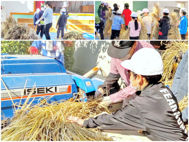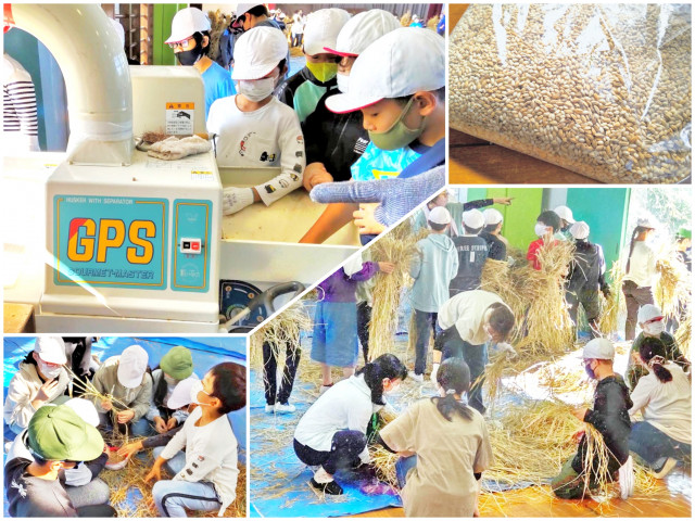 今はコンバインという農業機器で稲刈り・脱穀・籾の選別・藁処理を同時に行う農家さんがほとんどだそうで、こうして米作りの工程を1つずつ体験できることが貴重な知識と経験になります
