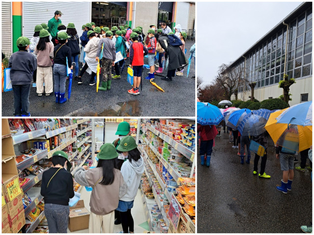 社会科の「はたらく人とわたしたちのくらし」の学習でスーパーマーケットで働く人の仕事を調べ、どのような工夫をしているか調査するためのスーパーマーケット見学