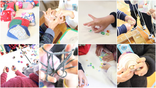 出来た!と嬉しそうに見せてくれる子や毛糸が絡まって苦戦する子もいます