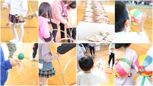 12/9(金) 一年生の生活科「昔遊びの達人になろう」の学習でコロナ禍でしばらくなかった昔遊び体験が行われました