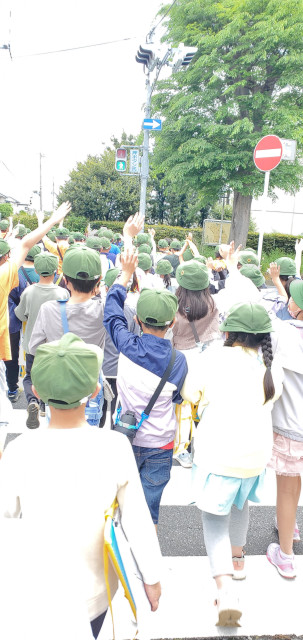 途中歩道から降りて先生に注意されたり列を守らず歩く子がいましたが
