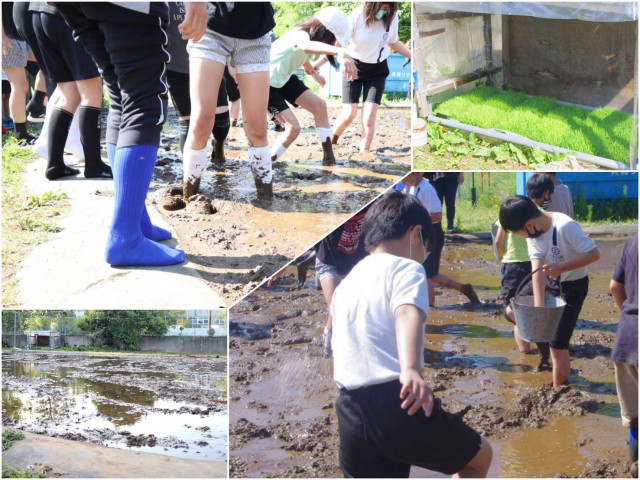 5年生は社会科で「日本の農業」について学びます。知識として学習するだけではなく、ボランティアさんやPTAの皆さんのご協力を得て、実体験を通して「日本の農業」について考える貴重な体験学習です