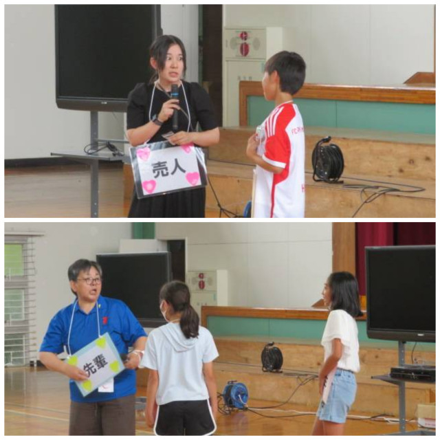 代表生徒が実際に薬物を勧められた時はどう断るか、ロールプレイングで擬似体験をし、皆で学習しました。