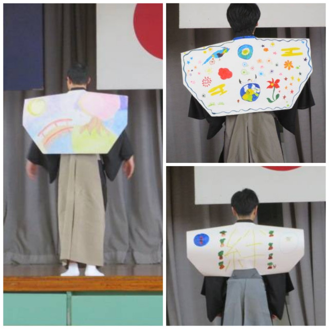 休憩を挟んで、事前のワークショップで各クラスで作成した、裃(かみしも)の発表会が行われました