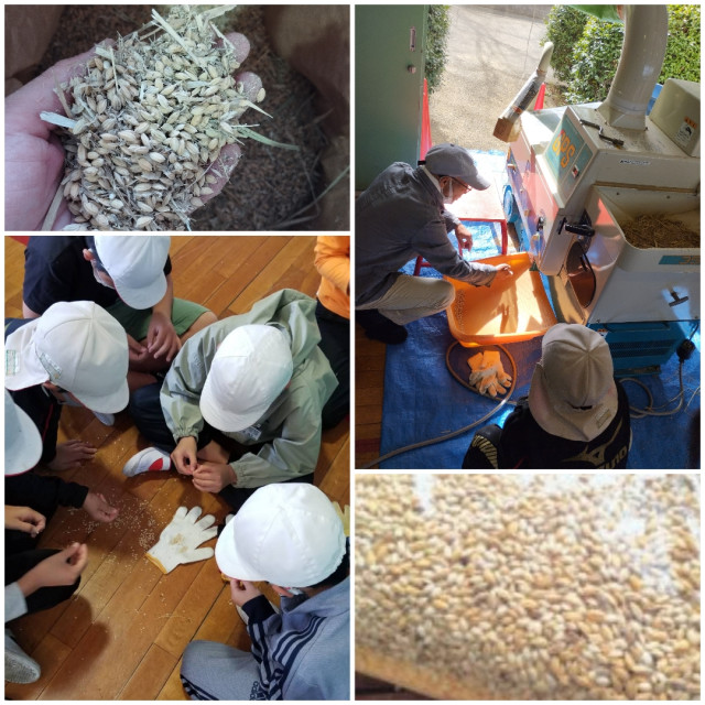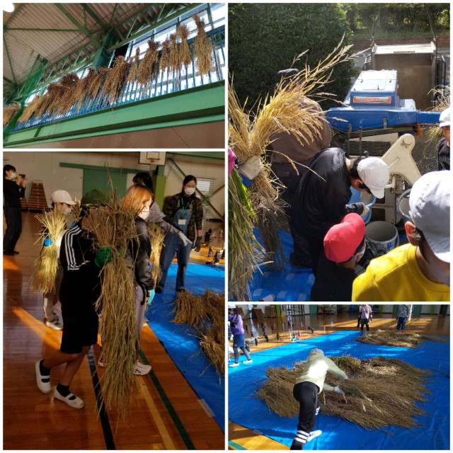 今はコンバインという農業機器で稲刈り・脱穀・籾の選別・藁処理を同時に行う農家さんがほとんどだそうで、こうして米作りの工程を体験できることが貴重な知識と経験になります