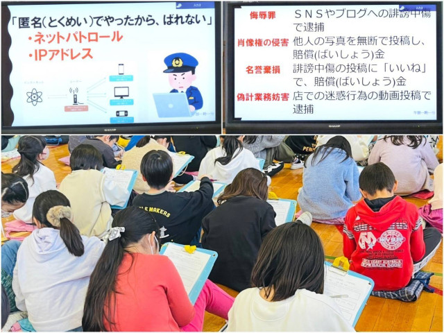 低学年は動画を見ながら正しい使い方を学び、間違った時にどんなことが起こるかを教えていただきました