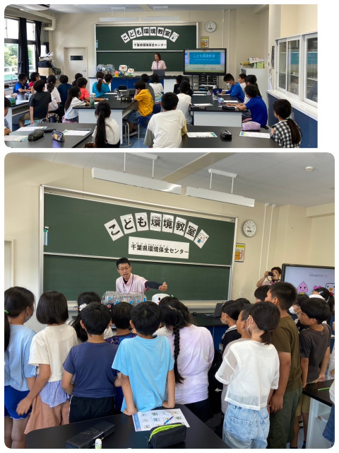 千葉県環境保全センターの方々にお越しいただき家庭から出る生活排水の「水の循環」について実験を交えつつ詳しく教えて頂きました。