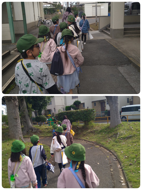 校舎からグループごとに一列で出てきた子供たちは当日協力していただく保護者や先生に元気に「行ってきます!」と言って出発していきました。