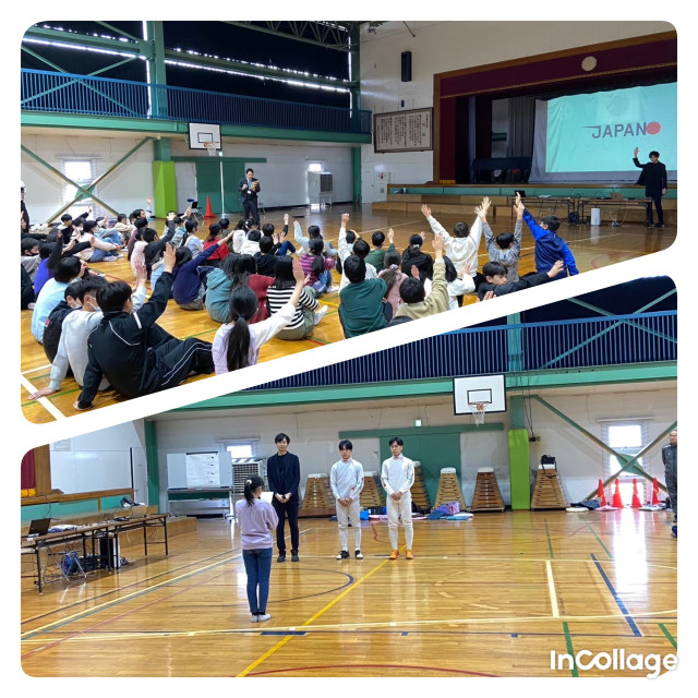 最後に代表生徒対高橋選手、坂藤選手の対戦が行われ皆んなが応援する中代表生徒はとても健闘していました