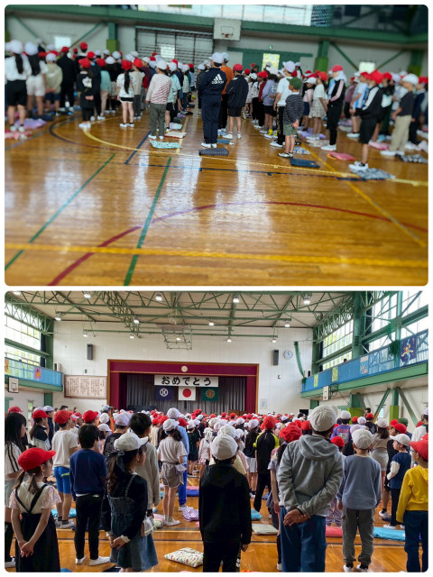 お待ちかねの全校生徒で一年生を迎える会の始まりです!