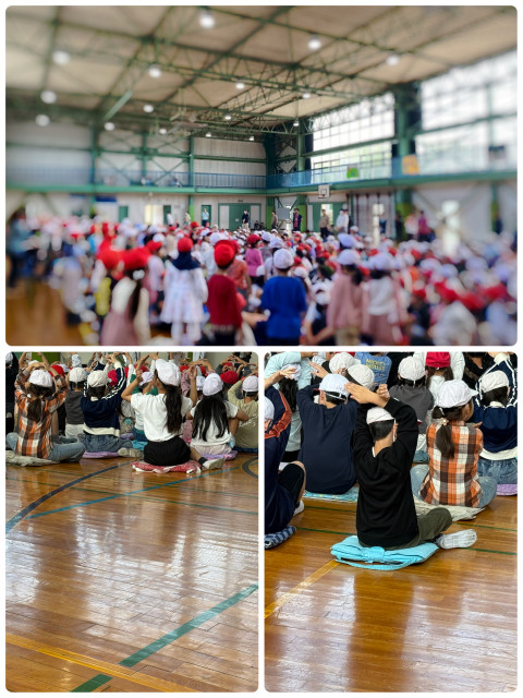 各教室に着いて計画員のお兄さんお姉さんの司会進行でふれあい活動の団結式を行いました。