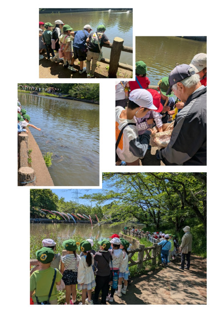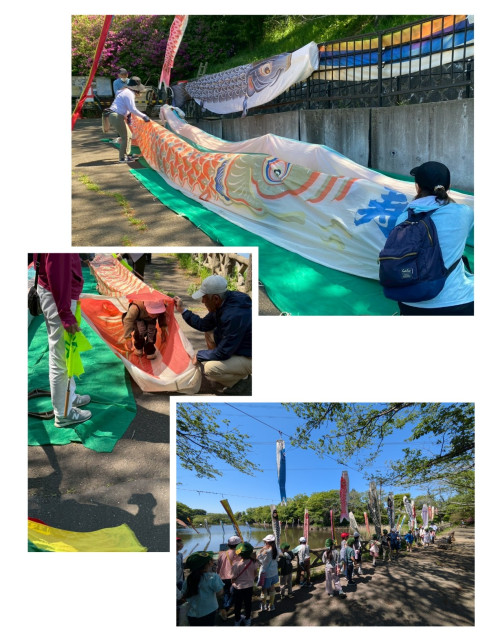 調整池に着き、こいのぼりが少しずつ見えてくると、わくわくした様子で、何匹いるか数えている子もいました。