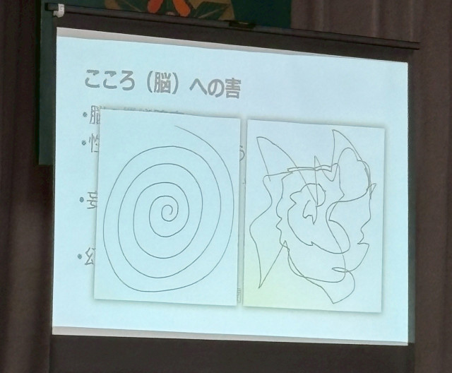 正常な人と薬物を乱用している人、うずまきを描くとどうなるか…