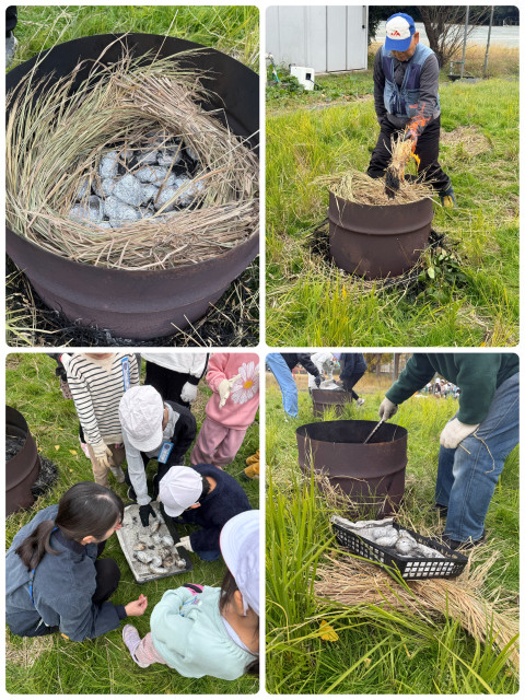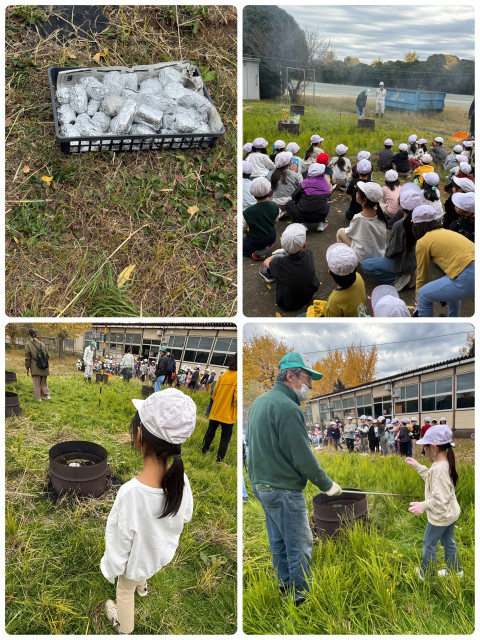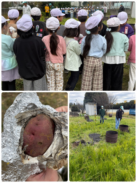 ボランティアの方々に大きな声でお礼をして焼きたてのお芋を教室に持ち帰り、みんなで食べました。
