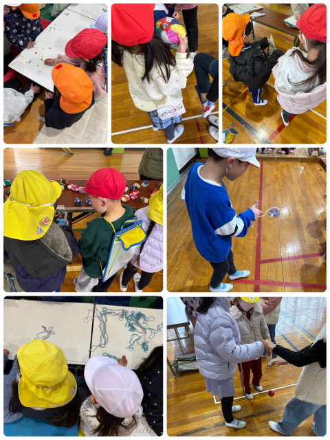 12月にボランティアさんたちに教えてもらった「昔遊び」を今度はもうすぐ小学生になる千代田幼稚園と第2コスモス幼稚園のお友達と一緒に楽しみます。
