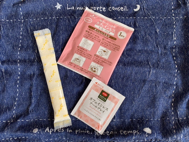 用意したのはcoopカフェインレスコーヒー、coopカフェインレスアールグレイ、瀬戸内レモンのレモネードの3種類です。