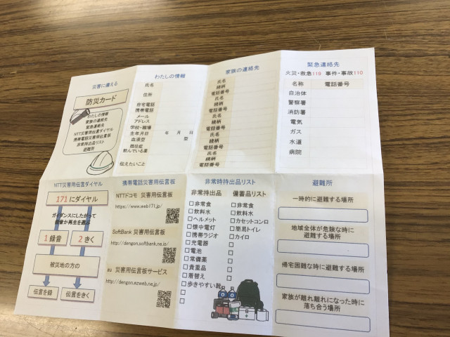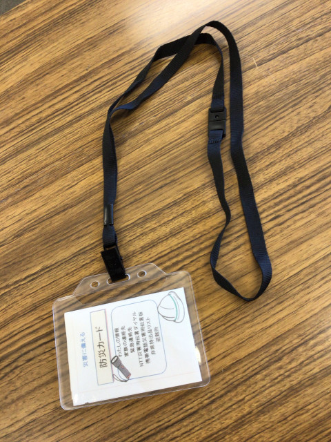 記入した物をホルダーに入れ、防災バックにつけたり、避難する時に身に付けて持っていけるようお話しました。
