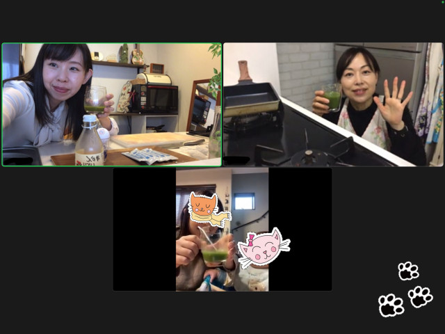 zoomで各ご自宅から青汁料理にチャレンジしました(^^)