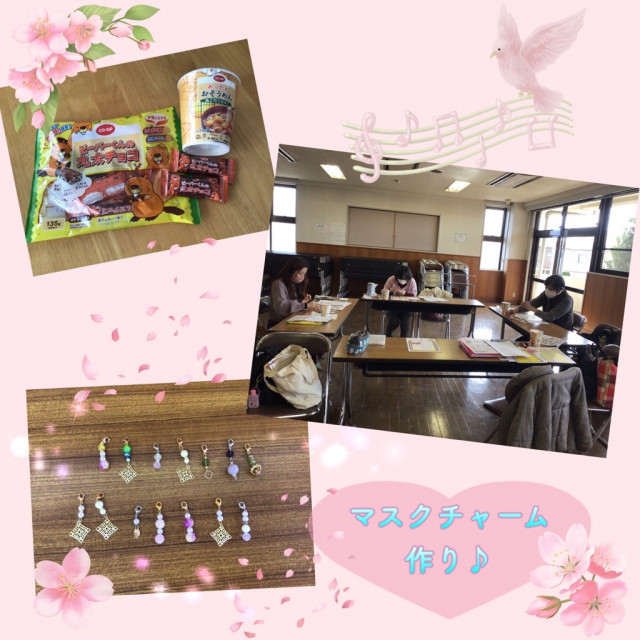 工作タイムには、マスクチャームを作りました😃