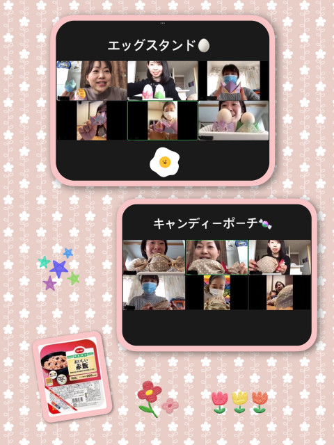 キャンディーポーチは布の四隅を布用のボンドで処理するのですが、会場ではなくZOOM開催だったので、事前に処理した布をメンバーさんにお渡ししました。
