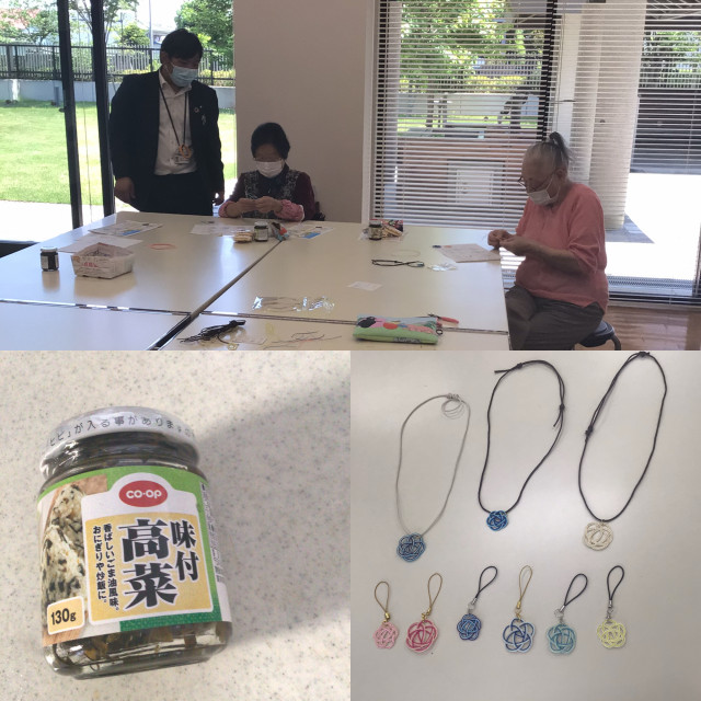 できた水引きの梅結びを、キーホルダーとペンダントにアレンジしたら、皆さんとても素敵に仕上がったと喜んで、みなさんバックにつけたり、ペンダントは早速首に掛けて見せ合っていました。