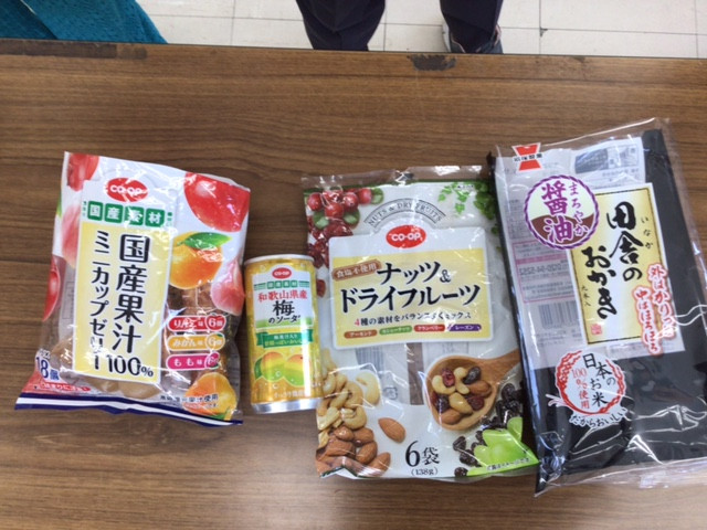 「国産果汁100%ミニカップゼリー」「田舎のおかき」