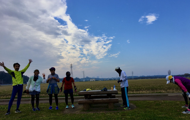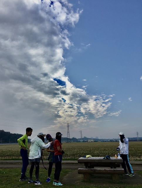走り始めは,ちょっと寒かったけど,曇空/晴れの中,