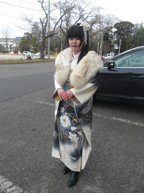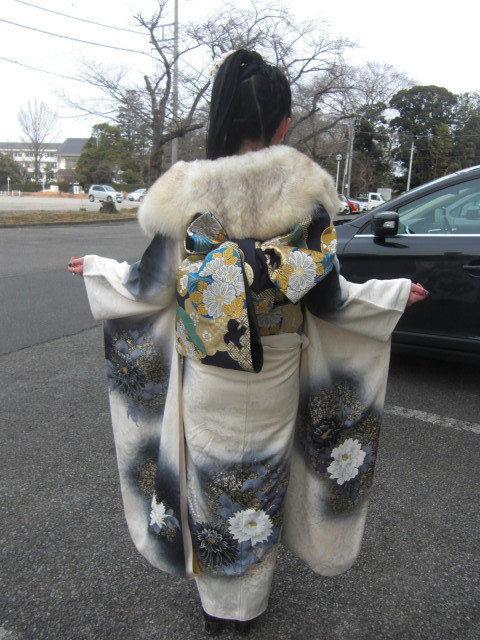 成人の女性にも,偶然遭遇し,綺麗な御着物と写真を撮らせて頂きました。
