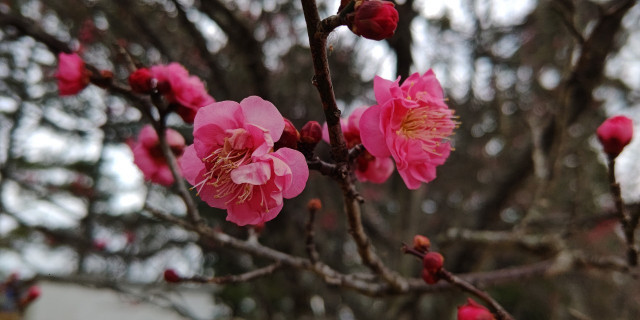 紅梅が咲いて,いい香りを放っていたよ🌺