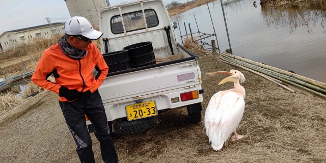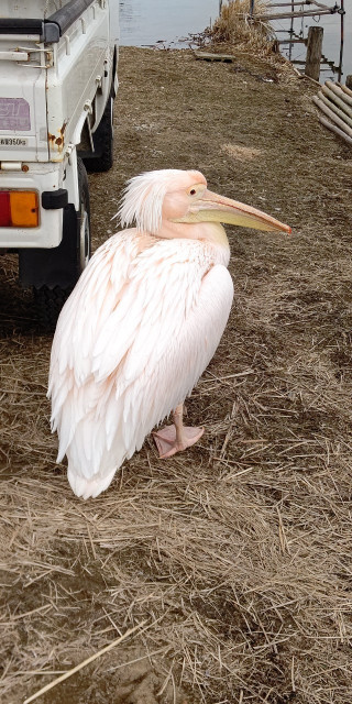桃色ペリカン『カッタ君』と遊んで,300羽の銀色🦆集団にも会った。