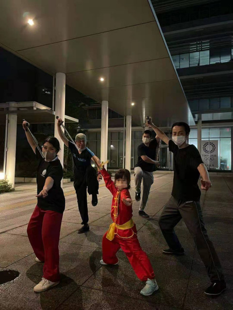 万円帽子対策の為、普段は9時まで会場で授業なのですが、今は8時に青少年会館をあとにし、付近の公園で剣と刀の指導をする。