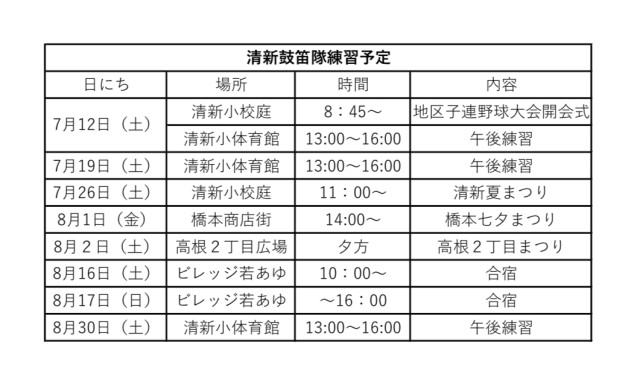 清新小が使用出来ない時は公民館等、市内の他施設で練習します。