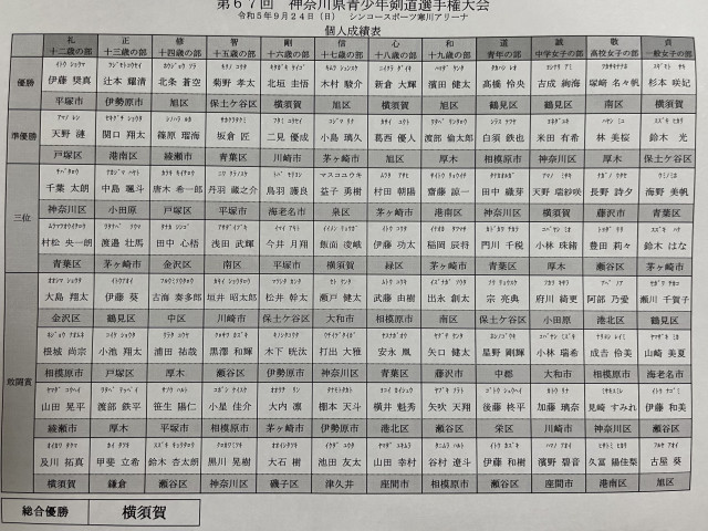 12歳から青年まで年齢別に12種別の、大規模な県大会に出場した区の代表者は、見事、県7位に入りました。