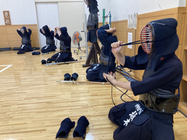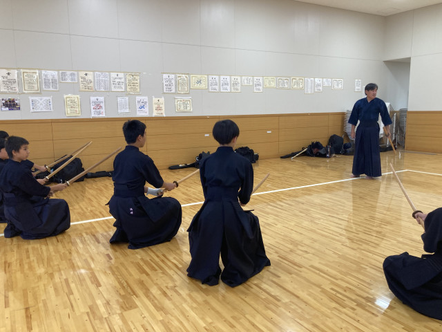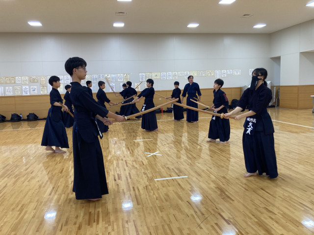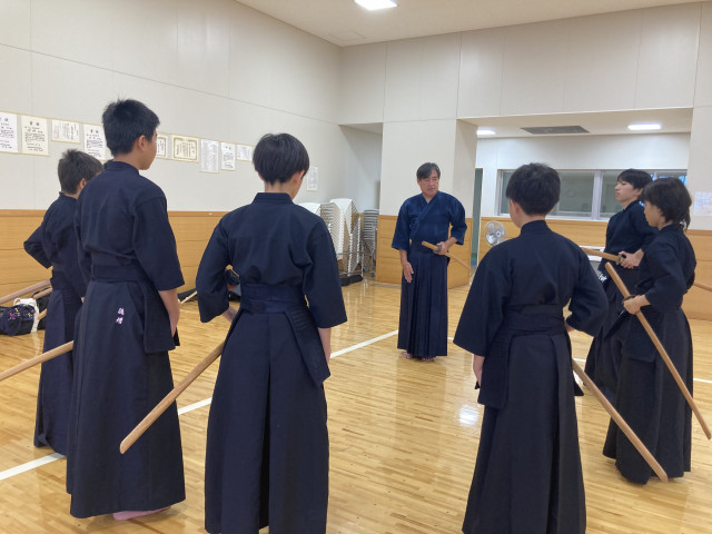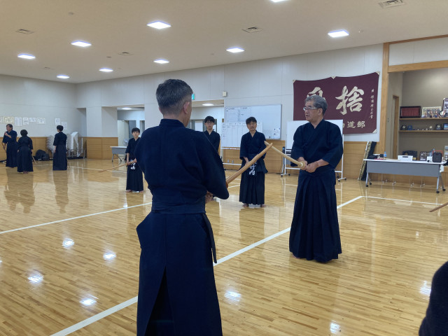 無段の中学生から七段の高段者まで29名の参加者が集まりました。講師は剣道教士八段の岡見先生、前川先生です。