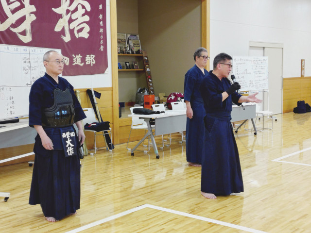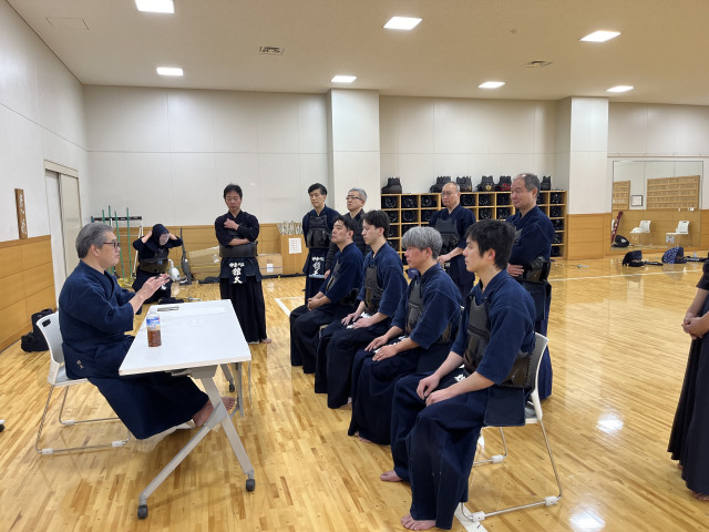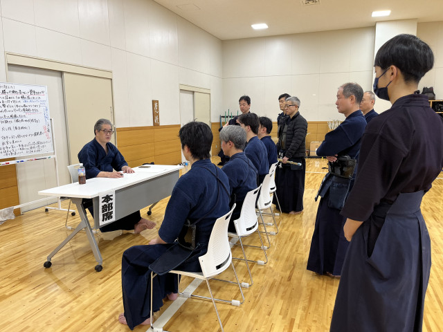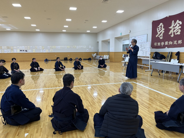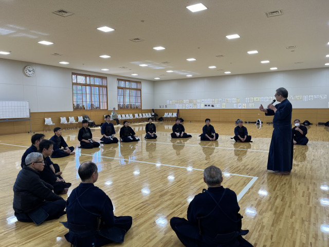 本年度最後の合同稽古会、前半は教士八段前川先生の指導で基本打ち、特に足の使い方や打ち間についてご指導を受けました。後半は、教士八段岡見先生の審査に対する心構えや留意点についてご説明いただき、多くの質疑応答もあり有意義な時間となりました。