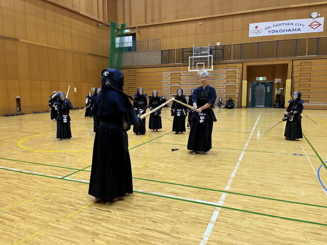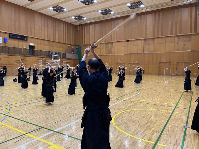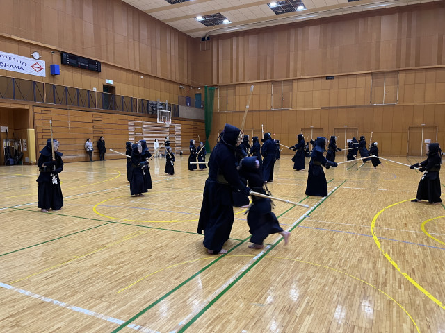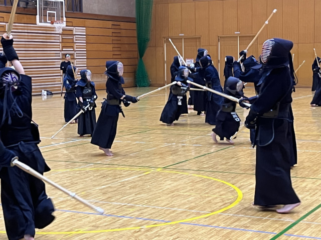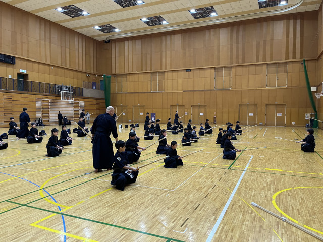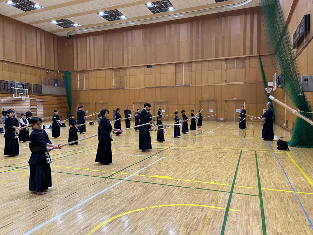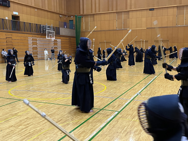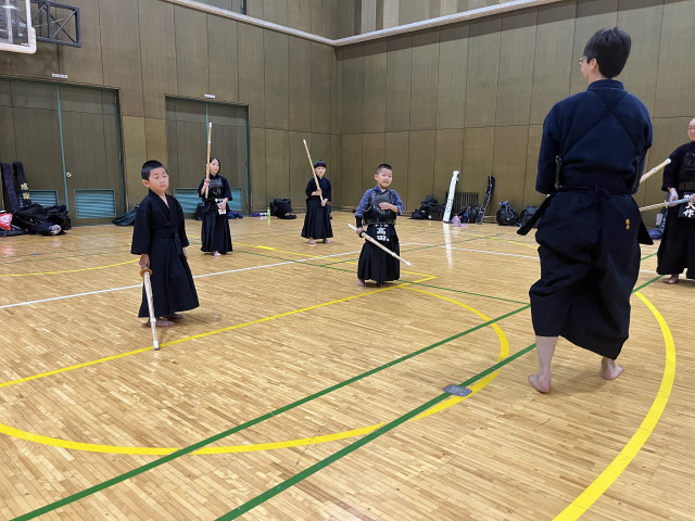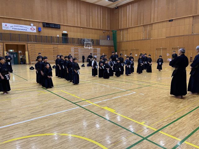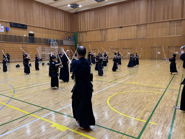 小学生から大人まで一同に集まっての拡大合同稽古会を開催しました。前半は小中学生の礼法、素振りから基本打ちを先生方が丁寧に指導。後半は大人と小学生に分かれて稽古を行いました。