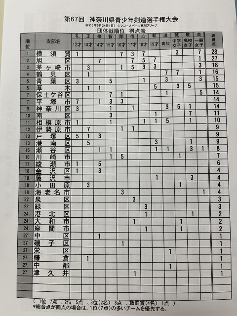 12歳から青年まで年齢別に12種別の、大規模な県大会に出場した区の代表者は、見事、県7位に入りました。