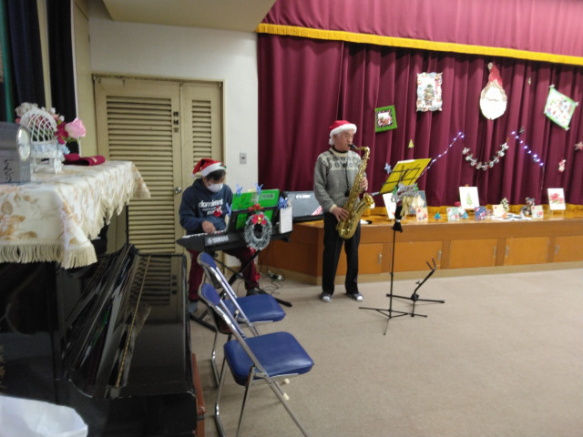 高齢者のためのカフェ「ほっとかへんでカフェ」が12月9日(金)に西賀茂会館で開催されました。飲み物とお菓子が用意されて、鈴木良一様のサキソフォン、北尾博さまの電子ピアノによるクリスマスソングや歌謡曲の演奏や、健康体操などがあり楽しいひと時を過ごすことができました。来月(1月)は13日(金)10時から開催されますので、ご関心のを持たれた方はぜひご参加ください。