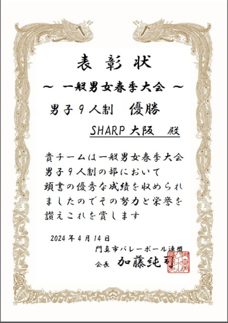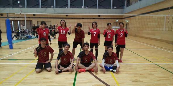 門真市立総合体育館にて、門真市バレーボール連盟主催の「9人制バレーボール男女混合市民総合体育大会」が開催され、出場させていただきました。